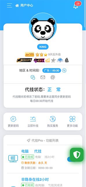 极简主义,轻装出发,让您随时随地掏出手机就能用上代挂,享受火箭般的加速.不仅拥有全网最全的加速服务,且稳定性为业内一流水准,让您每天都能满速升级.全程数据传输采用加密协议保护,让您的数据无处可泄,无处可窃,享受万分般的舒适. 秉承工匠精神,日日夜夜的细节打磨,只为完美两字能在手指尖尽情绽放,此刻让我们一起享受.